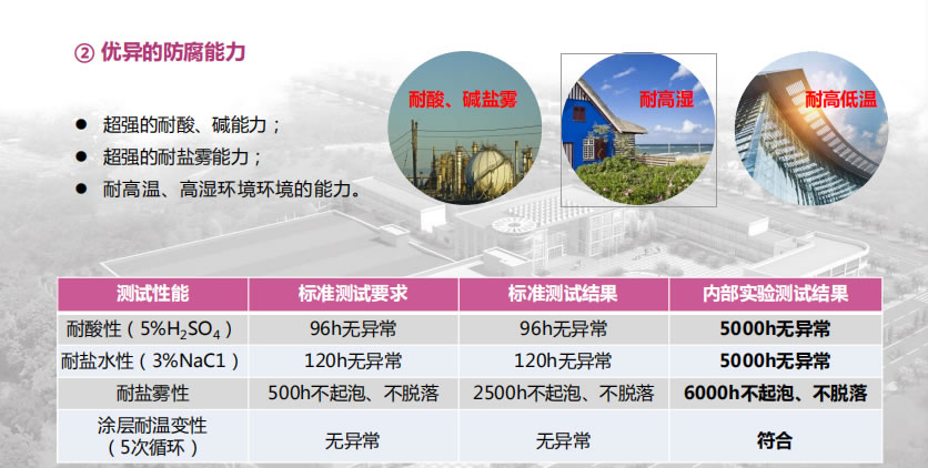 彩钢瓦大部分使用于户外,长期日晒雨淋,靠近海边的或者化工厂的污染环境下,一般不到5年就会发生腐蚀,如果不采取翻新就会发生渗漏和安全隐患,直接影响正常的生产和工作。因此,彩钢瓦在生锈初期就需要进行翻新维修,延长使用寿命,确保安全和防水保障。彩钢瓦翻新选择涂料时需要满足耐腐蚀性能、耐候性能、耐紫外线性能、耐温变性能、高弹性、耐水防水性能等,才能翻新如新达到长效防腐防水的效果。通过筛选,有机硅弹性防腐涂料就是这么多综合性能要求同时满足的佼佼者,将有机硅弹性防腐涂料认定是彩钢瓦翻新的标配防水防腐涂料不为过。有机硅弹性防腐涂料在非浸泡腐蚀环境下,以其突出的优异性能还广泛应用于焦化储气柜、化工储罐、管道、混凝土搅拌站机械设备、光伏支架、化工厂内外墙、建筑钢结构、混凝土结构、电力和海洋重工防腐并且具有良好的装饰效果。为发挥有机硅弹性防腐涂料最佳防腐效果,涂层厚度是关键性指标,根据ISO 9223-2012腐蚀环境等级划分,有机硅弹性防腐涂料防腐层厚度要求也不同,具体规定为:
