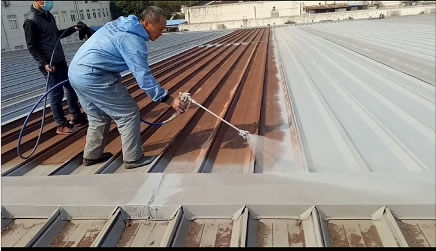 有机硅弹性防腐涂料属于单组分防腐涂料,底面合一,施工简单方便,喷刷皆可,潮湿无明水基面施工不受影响,极大的降低了施工条件限制,节约了施工成本,最新市场行情调研:彩钢瓦采用有机硅弹性防腐涂料翻新2021年双包造价大约50元/m²左右,而采取换新的方法双包造价100元/㎡左右,而且不会影响生产的正常运行,造价悬殊不言而喻。机硅弹性防腐涂料不但可以用于金属和混凝土防腐;而且可以作为金属和混凝土表面防水材料使用(耐水及不透水性能很好),是不可多得的防水防腐一体化涂料产品,特别适合大面积彩钢瓦翻新。需要说明的是,彩钢瓦翻新看似简单,实属不易,不合理的翻新会过早的造成翻新层失效,原因关键在于防腐涂层材料的选择。